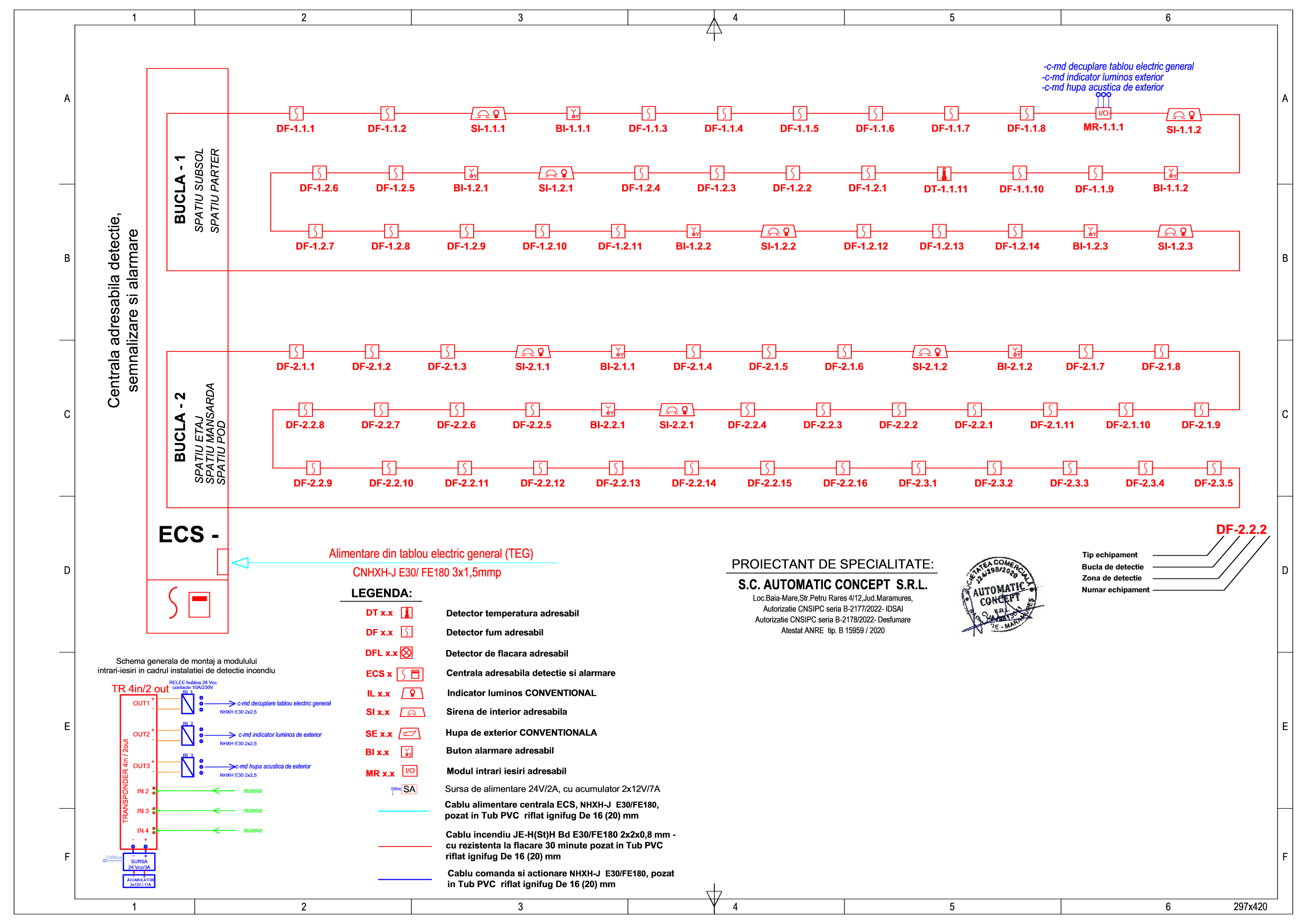 Suntem atestati ANRE şi CNSIPC , atât firma cât şi personalul, pentru proiectarea de instalaţii electrice exterioare/interioare pentru incinte/construcţii civile şi industriale, branşamente aeriene şi subterane, la tensiunea nominală de 0.4KV, cât şi proiectarea sistemelor şi instalaţiilor de semnalizare, alarmare şi alertare în caz de incendiu, proiectarea sistemelor şi instalaţiilor de ventilaţie pentru evacuarea fumului şi gazelor fierbinţi, proiectarea sistemelor şi instalaţiilor de limitare şi stingere a incendiilor.